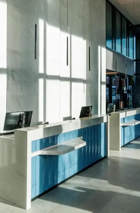 Pantallas o barreras físicas entre el personal y los invitados en las áreas apropiadas